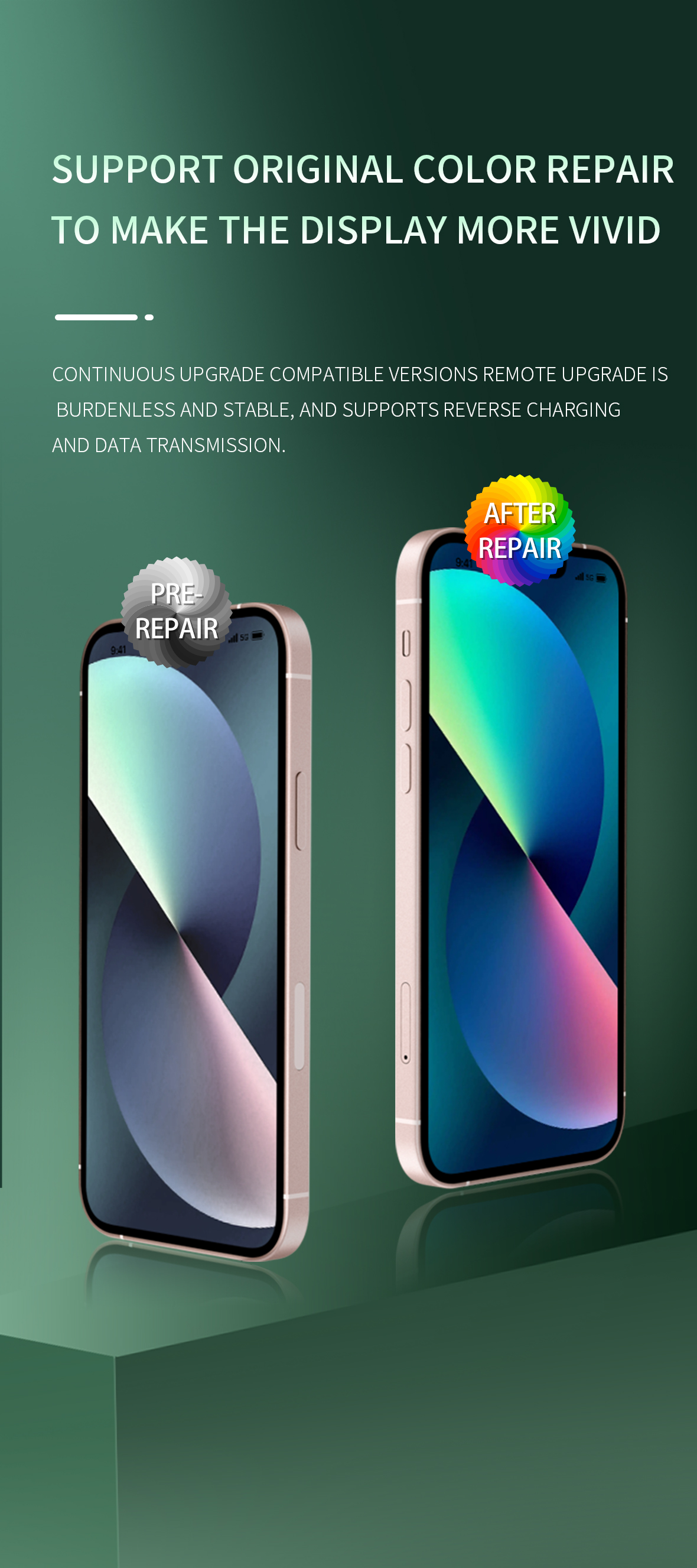 The selling point of the original color repair: DL400 Pro Smart Screen Tester supports the original color repair to make the display more vivid. Continuously upgrade the compatible version, remote upgrade without burden, strong stability, support reverse charging and data transmission.